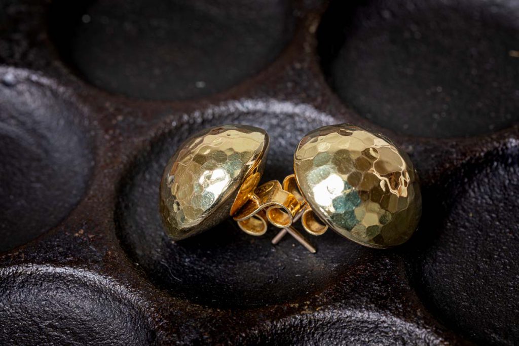 “Deze prachtige oorstekers zijn gemaakt van 14 karaat gehamerd goud en wegen maar 4 gram per stuk. Een ‘musthave’ voor elke vrouw, want ze reflecteren het licht op een speciale manier en passen bij elke outfit.”