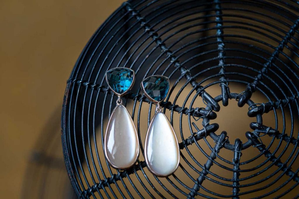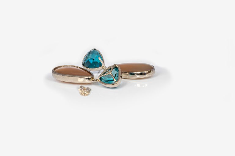Oorstekers met topaas en druppelvormige maansteen