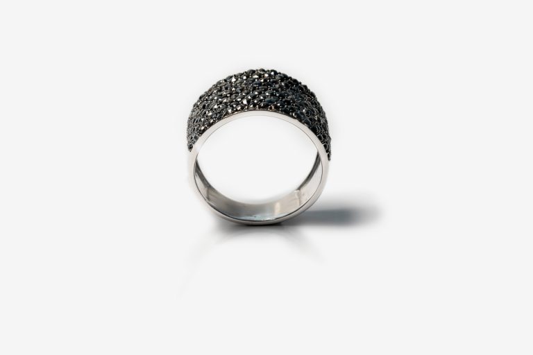 Witgouden ring met pave gezette zwarte roosdiamanten