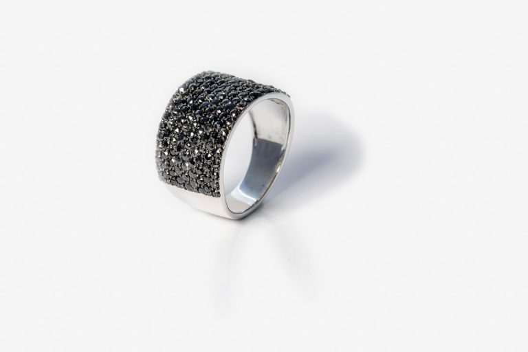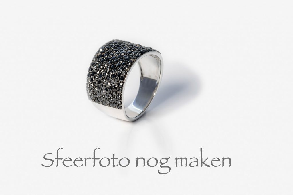 “18 krt. witgouden ring met pave gezette zwarte roosdiamanten.Het geeft de ring een moderne uitstraling en maakt het bijzonder en exclusief!”